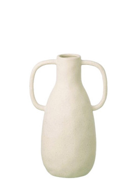 Vase en grès avec anse blanc cassé