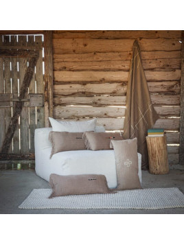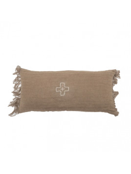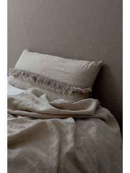 Coussin frangé en lin avec fermeture portefeuille. Matière:...