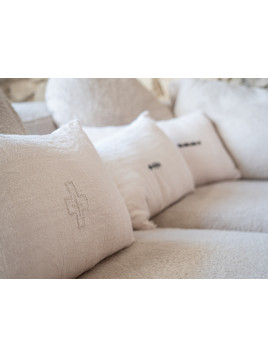 Ce joli coussin est composé de jute et de coton brut blanc....