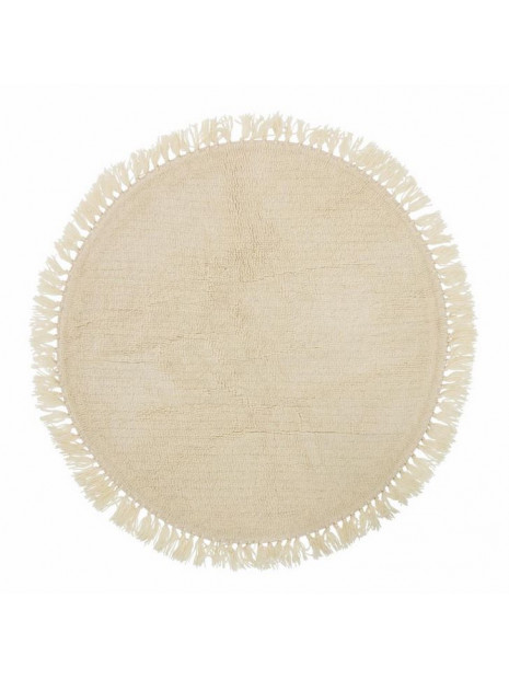 Doux tapis rond en laine avec des franges sur la bordure.